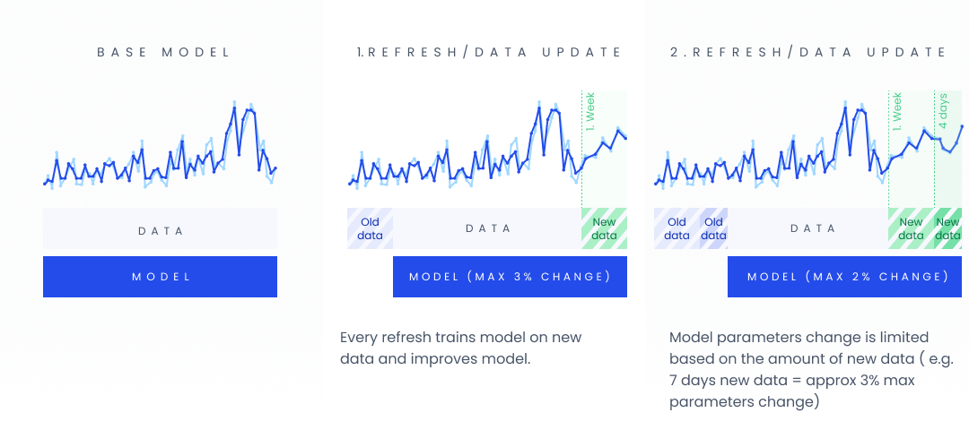 Maintain consistency in your analytics without unexpected disruptions. Our Model Refresh process updates your model incrementally, avoiding drastic changes that could compromise your insights. By preserving the core structure of your original model, we provide a stable yet progressively improving tool that you can rely on over time.